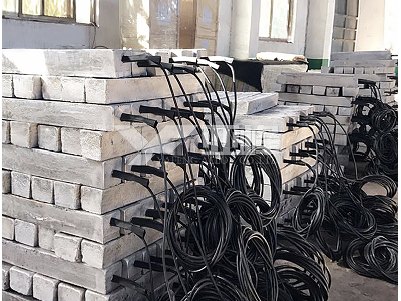 電纜導線(xiàn)一根:按顧客設計要求長(cháng)度及規格焊接在犧牲陽(yáng)極上,并用熱縮套等密封;